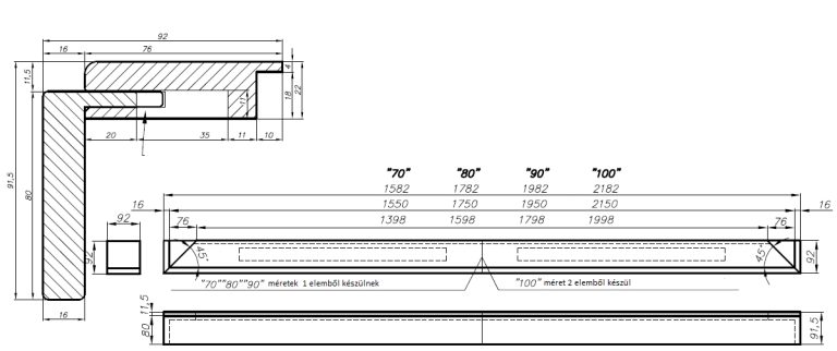 Szélességi méret | 70 | 80 | 90 | 100 | |